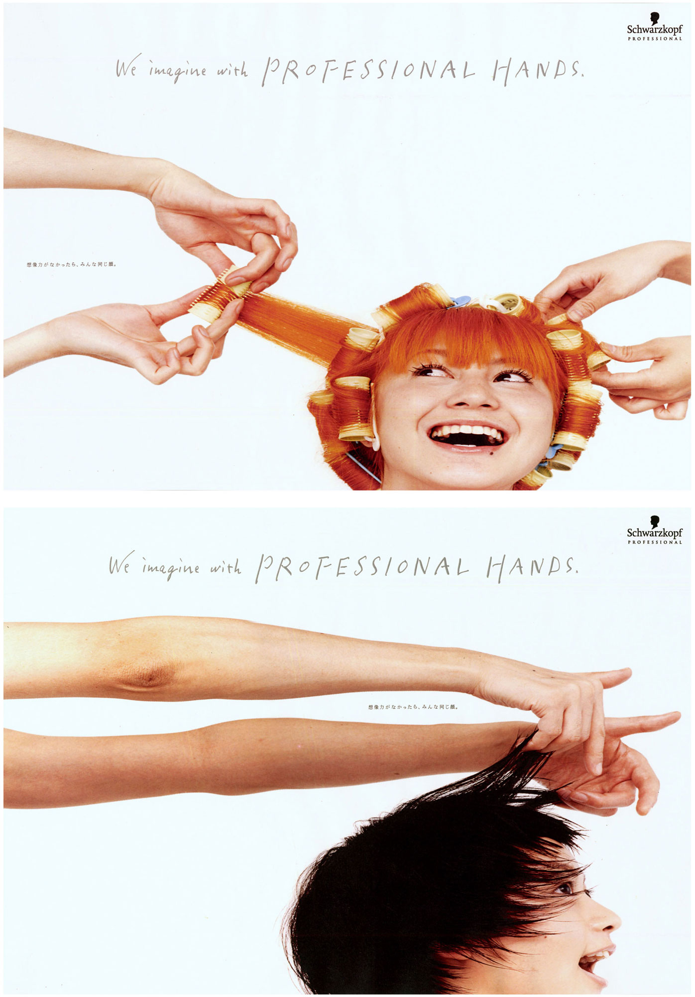 (株)DRAFT時代の仕事。DRAFTで初めてのヘアケアの仕事。女性モデルを撮影したのもこの仕事が最初。スキンヘッドの女性はモスクワで撮影。CGではなく一発撮影。目の前で髪の毛を剃ってもらったのは忘れられない。4年間、ブランドブックPP、全ての商品カタログ、いくつかのパッケージまで制作。コピーライター平山英一郎氏との最初の仕事。この時期のシュワルツコフの社長がゲアハルトシュラメク氏。後にAmatoraの社長として再会することになる。コモンズ(株)金尾泰雄氏との仕事。